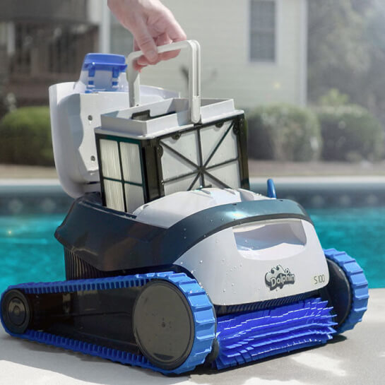 Удобная ручка позволяет переносить пылесос, погружать в воду и вытаскивать его из воды. Одним нажатием кнопки Вы можете извлечь быстросъёмный фильтр-контейнер и промыть его под водой.
