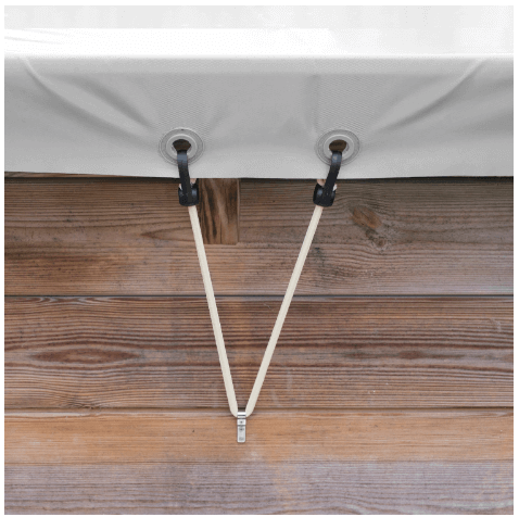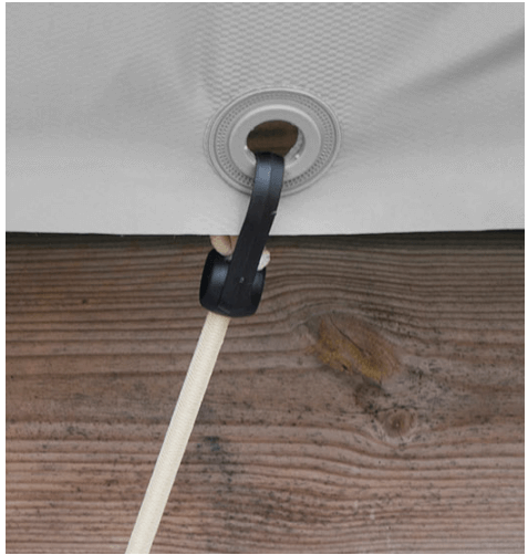 • Закрепляется на месте с помощью ремней и крючков из нержавеющей стали, которые закрепляются под ограждением